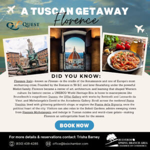 Join the Bulverde Spring Branch Area Chamber for an Unforgettable Journey to Tuscany with an Exclusive Extension to Rome – Departing November 1, 2026!